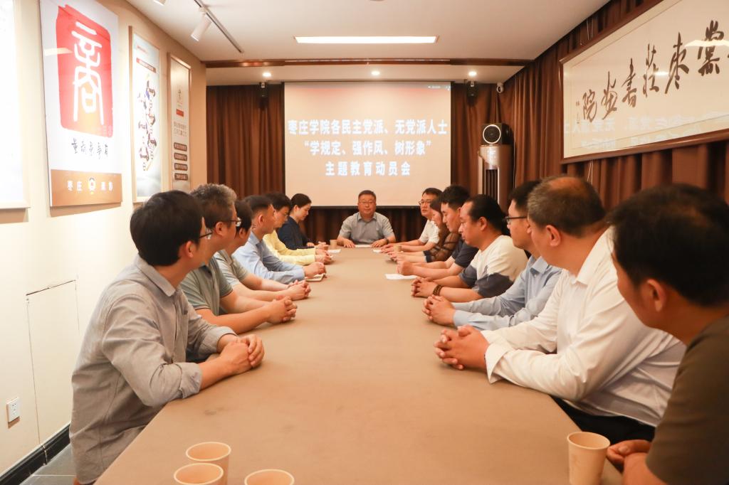 随后,召开枣庄学院各民主党派、无党派人士“学规定、强作风、树形象”主题教育动员部署会。丰雷强调,开展“学规定、强作风、树形象”主题教育,既是与中共党内开展深入贯彻中央八项规定精神学习教育同频共振,也是顺应新时代加强中国特色社会主义参政党建设的现实需要,对于坚持好发展好完善好中国新型政党制度具有重要意义。丰雷要求,各民主党派、无党派人士要切实提高政治站位,深入学习贯彻习近平总书记关于加强民主党派、无党派人士作风建设和廉洁建设的重要指示要求,深刻认识开展主题教育的重大意义,以实际行动坚定拥护“两个确立”、坚决做到“两个维护”。同时,要准确把握主题教育的部署要求,坚持学用结合、立查立改,将主题教育融入日常、抓在经常,为学校建设国内一流应用型大学、实现“两升一创”战略目标作出新的更大贡献。